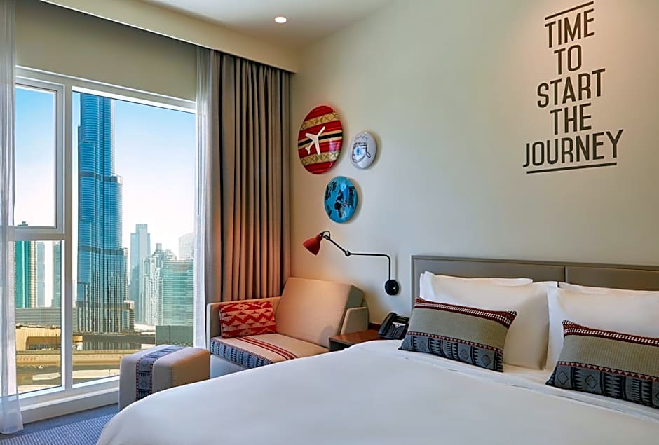With stunning views of the Burj Khalifa, this spacious 26 sqm Rover Room is equipped with free WiFi Internet access, an 48' interactive flat-screen TV, a designer bed by Simmons, sofa bed suitable for a child, a modern bathroom including power rain showers and hairdryer, multiple electronic sockets and a large and ultra secure safe. Additionally, Rovers can enjoy complimentary water on arrival, coffee and tea-making facilities and a convenient mini fridge. This room is nonsmoking.